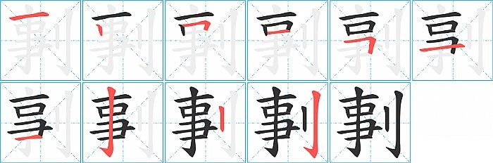 剚是左右结构,剚的部首是“刂”,部外笔画8画,总笔画10画,剚的笔画顺序是“横、竖、横折、横、横折、横、横、竖钩、竖、竖钩”。看看“剚”字什么意思 >>
