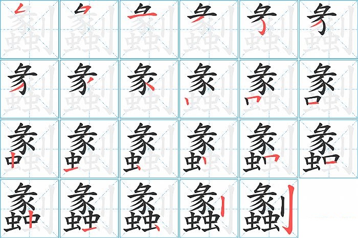 撇折、横撇/横钩、横、撇、弯钩、撇、撇、撇、点、竖、横折、横、竖、横、点、竖、横折、横、竖、横、点、竖、竖钩