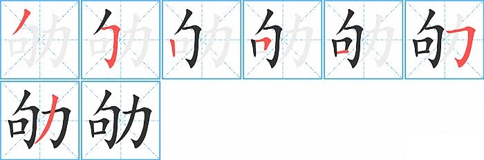 《劬》字的笔顺分步演示图(一笔一画写汉字)