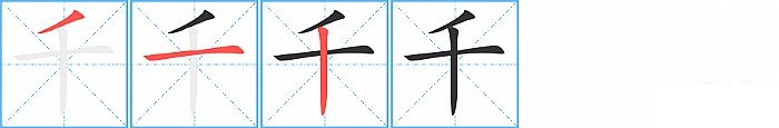 《千》字的笔顺分步演示图(一笔一画写汉字)