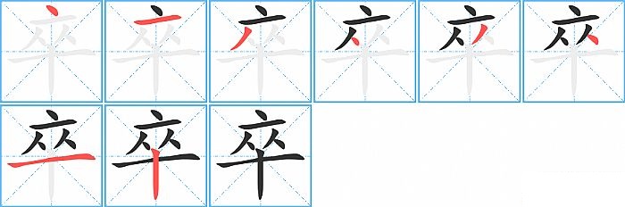 《卒》字的笔顺分步演示图(一笔一画写汉字)