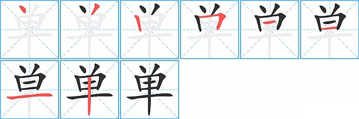 《单》字的笔顺分步演示图(一笔一画写汉字)