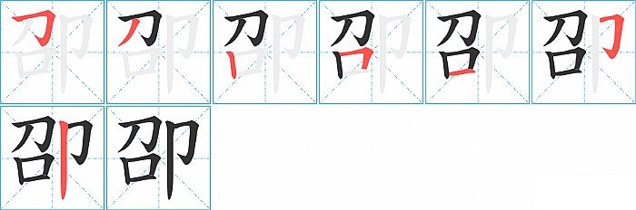 《卲》字的笔顺分步演示图(一笔一画写汉字)