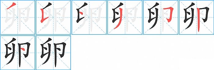 《卵》字的笔顺分步演示图(一笔一画写汉字)