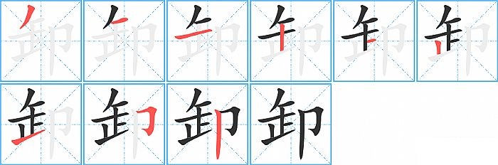 《卸》字的笔顺分步演示图(一笔一画写汉字)
