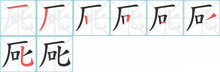 《厑》字的笔顺分步演示图(一笔一画写汉字)