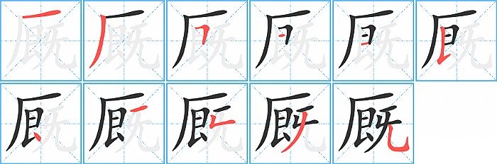 厩是半包围结构,厩的部首是“厂”,部外笔画9画,总笔画11画,厩的笔画顺序是“横、撇、横折、横、横、竖提、点、横、撇折、撇、竖弯钩”。看看“厩”字什么意思 >>