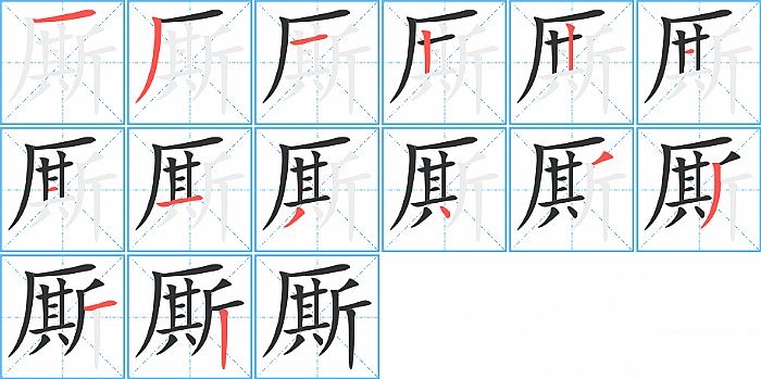 厮是半包围结构,厮的部首是“厂”,部外笔画12画,总笔画14画,厮的笔画顺序是“横、撇、横、竖、竖、横、横、横、撇、点、撇、撇、横、竖”。看看“厮”字什么意思 >>