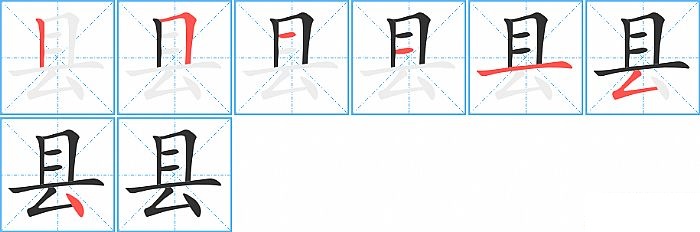 《县》字的笔顺分步演示图(一笔一画写汉字)