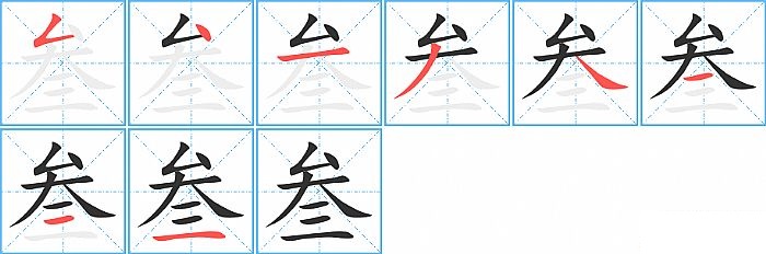 《叁》字的笔顺分步演示图(一笔一画写汉字)