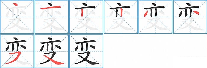 《变》字的笔顺分步演示图(一笔一画写汉字)