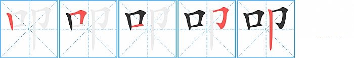 《叩》字的笔顺分步演示图(一笔一画写汉字)