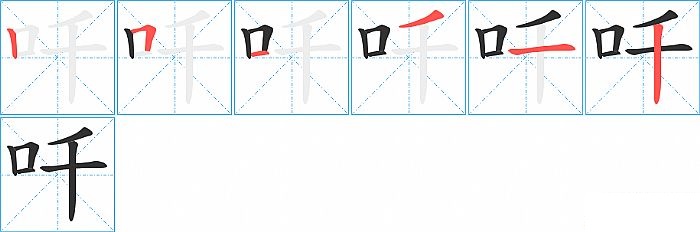 《吀》字的笔顺分步演示图(一笔一画写汉字)