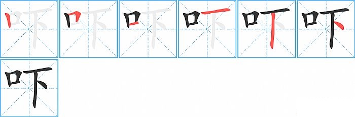 《吓》字的笔顺分步演示图(一笔一画写汉字)