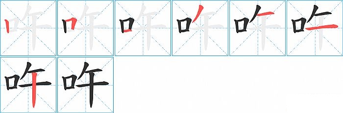 《吘》字的笔顺分步演示图(一笔一画写汉字)