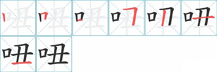 《吜》字的笔顺分步演示图(一笔一画写汉字)