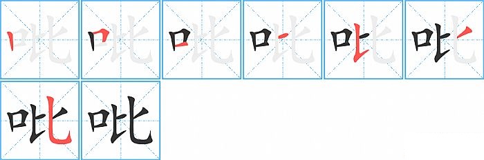 《吡》字的笔顺分步演示图(一笔一画写汉字)