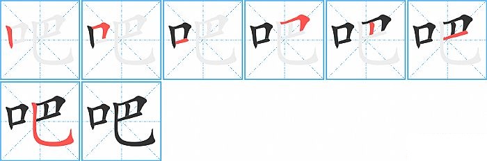《吧》字的笔顺分步演示图(一笔一画写汉字)