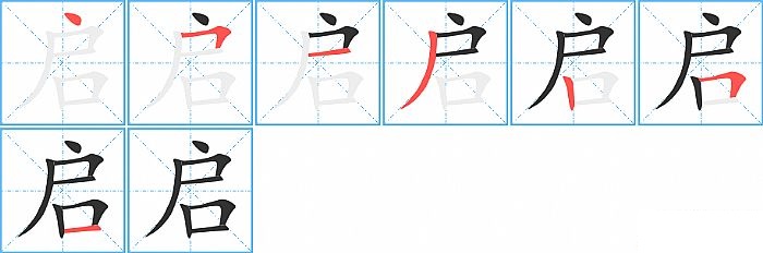 《启》字的笔顺分步演示图(一笔一画写汉字)