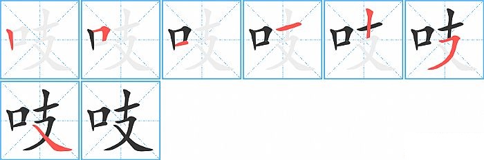 《吱》字的笔顺分步演示图(一笔一画写汉字)