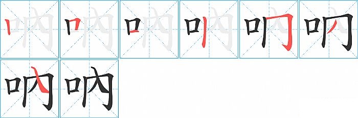 《吶》字的笔顺分步演示图(一笔一画写汉字)