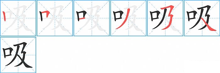 《吸》字的笔顺分步演示图(一笔一画写汉字)
