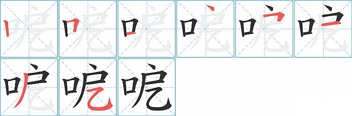 呝是左右结构,呝的部首是“口”,部外笔画5画,总笔画8画,呝的笔画顺序是“竖、横折、横、点、横折、横、撇、横折弯钩/横斜钩”。看看“呝”字什么意思 >>