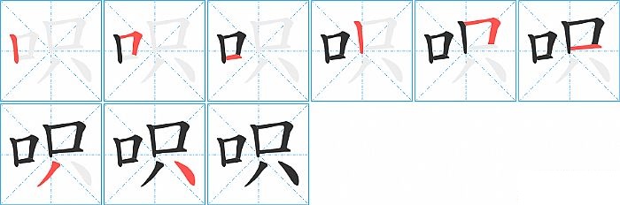《呮》字的笔顺分步演示图(一笔一画写汉字)