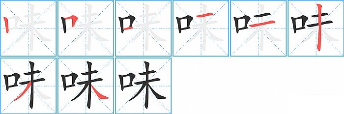《味》字的笔顺分步演示图(一笔一画写汉字)