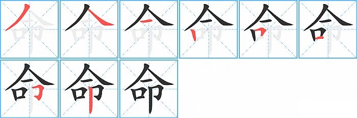 《命》字的笔顺分步演示图(一笔一画写汉字)