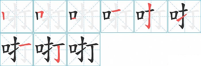 《咑》字的笔顺分步演示图(一笔一画写汉字)
