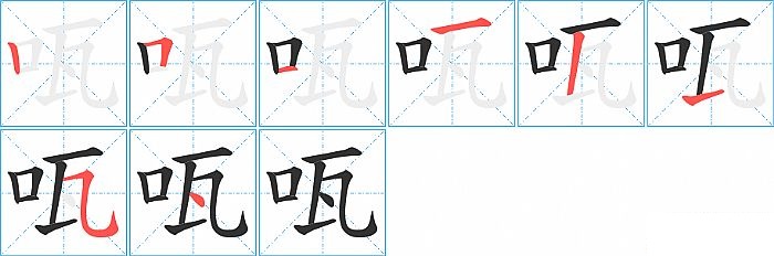 《咓》字的笔顺分步演示图(一笔一画写汉字)