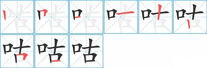 《咕》字的笔顺分步演示图(一笔一画写汉字)