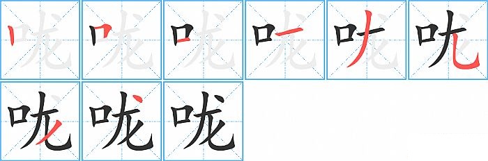 《咙》字的笔顺分步演示图(一笔一画写汉字)