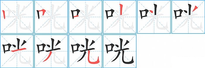 《咣》字的笔顺分步演示图(一笔一画写汉字)