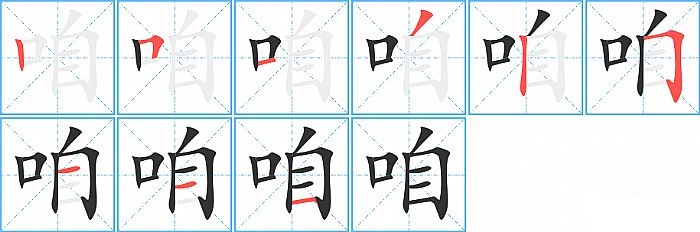 《咱》字的笔顺分步演示图(一笔一画写汉字)