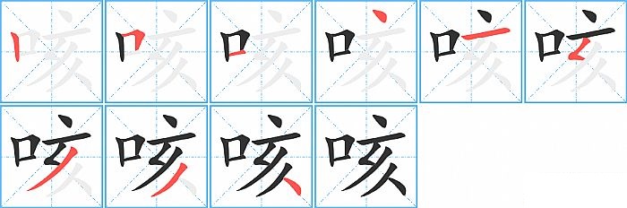 《咳》字的笔顺分步演示图(一笔一画写汉字)