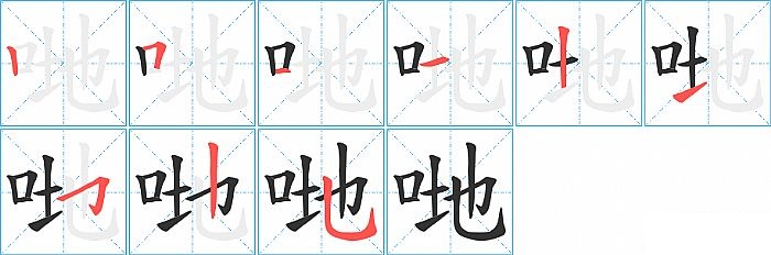 《哋》字的笔顺分步演示图(一笔一画写汉字)