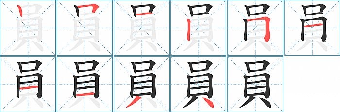 《員》字的笔顺分步演示图(一笔一画写汉字)
