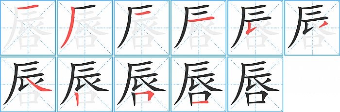 《唇》字的笔顺分步演示图(一笔一画写汉字)