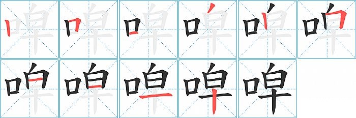 《唕》字的笔顺分步演示图(一笔一画写汉字)