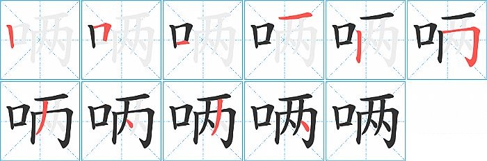 唡是左右结构,唡的部首是“口”,部外笔画7画,总笔画10画,唡的笔画顺序是“竖、横折、横、横、竖、横折钩、撇、点、撇、点”。看看“唡”字什么意思 >>