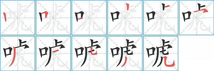 唬是左右结构,唬的部首是“口”,部外笔画8画,总笔画11画,唬的笔画顺序是“竖、横折、横、竖、横、横撇/横钩、撇、横、竖弯钩、撇、横折弯钩/横斜钩”。看看“唬”字什么意思 >>