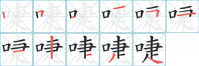 啑是左右结构,啑的部首是“口”,部外笔画8画,总笔画11画,啑的笔画顺序是“竖、横折、横、横、横折、横、横、竖、横、撇、捺”。看看“啑”字什么意思 >>