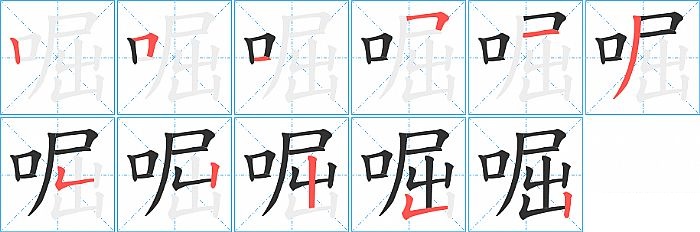 啒是左右结构,啒的部首是“口”,部外笔画8画,总笔画11画,啒的笔画顺序是“竖、横折、横、横折、横、撇、竖折/竖弯、竖、竖、竖折/竖弯、竖”。看看“啒”字什么意思 >>