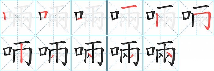啢是左右结构,啢的部首是“口”,部外笔画8画,总笔画11画,啢的笔画顺序是“竖、横折、横、横、竖、横折钩、竖、撇、点、撇、点”。看看“啢”字什么意思 >>