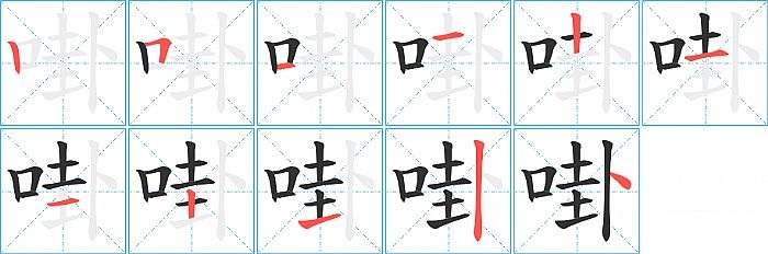 啩是左右结构,啩的部首是“口”,部外笔画8画,总笔画11画,啩的笔画顺序是“竖、横折、横、横、竖、横、横、竖、提、竖、点”。看看“啩”字什么意思 >>