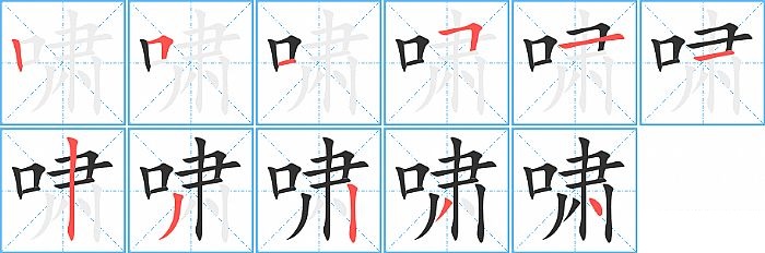 啸是左右结构,啸的部首是“口”,部外笔画8画,总笔画11画,啸的笔画顺序是“竖、横折、横、横折、横、横、竖、撇、竖、撇、点”。看看“啸”字什么意思 >>