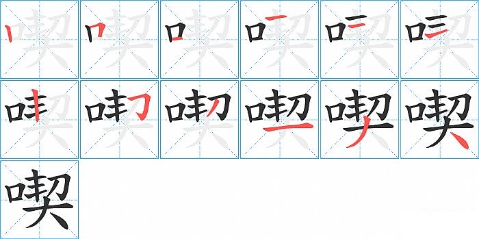 喫是左右结构,喫的部首是“口”,部外笔画9画,总笔画12画,喫的笔画顺序是“竖、横折、横、横、横、横、竖、横折钩、撇、横、撇、捺”。看看“喫”字什么意思 >>