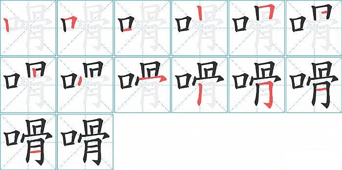 嗗是左右结构,嗗的部首是“口”,部外笔画9画,总笔画12画,嗗的笔画顺序是“竖、横折、横、竖、横折、横折、点、横撇/横钩、竖、横折钩、横、横”。看看“嗗”字什么意思 >>